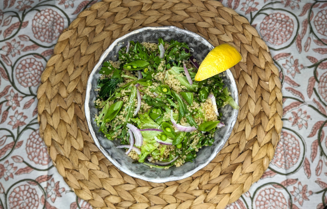 This spring quinoa salad is a bright, refreshing mix of whole grains and zesty produce, packed with fiber and plant compounds that support gut health and help reduce inflammation. Quinoa provides an excellent source of plant-based protein and fiber, while the snap peas, arugula, and red onion deliver antioxidants linked to improved immune function and reduced oxidative stress. Olive oil enhances absorption of fat-soluble phytonutrients, and the lemony vinaigrette adds flavor without excess sodium. Delicious on its own or topped with salmon, chickpeas, or a sprinkle of crumbled goat cheese, this salad is an easy, adaptable way to make healthy eating feel fresh and satisfying.